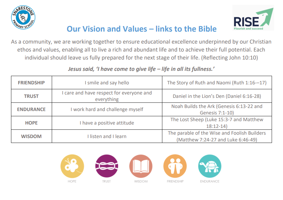 The ‘Snarestone Way’ was created in partnership with our pupils and reflects our core Christian values.