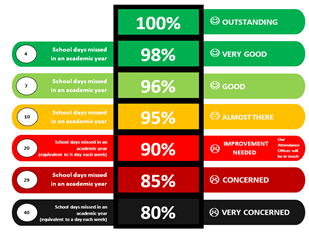 - At parents’ evenings, your child's class teacher will talk to you about attendance.